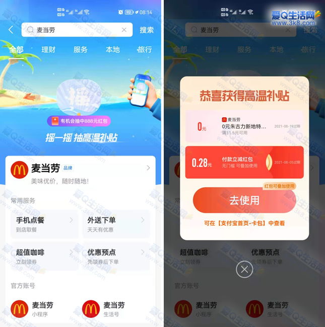 活动地址:【支付宝】APP搜索麦当劳