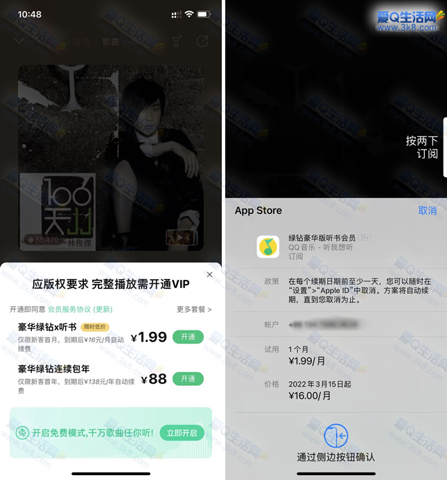 QQ音乐APP随便选一首VIP歌曲进入就会有1.99元开通豪华绿钻,开通完后需要自己去关闭自动续费