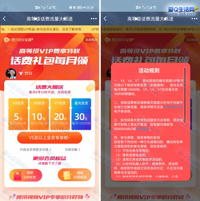 但是之前V7不限量领取话费的特权 已经 降到和V5、V6一样每月限量3000份了